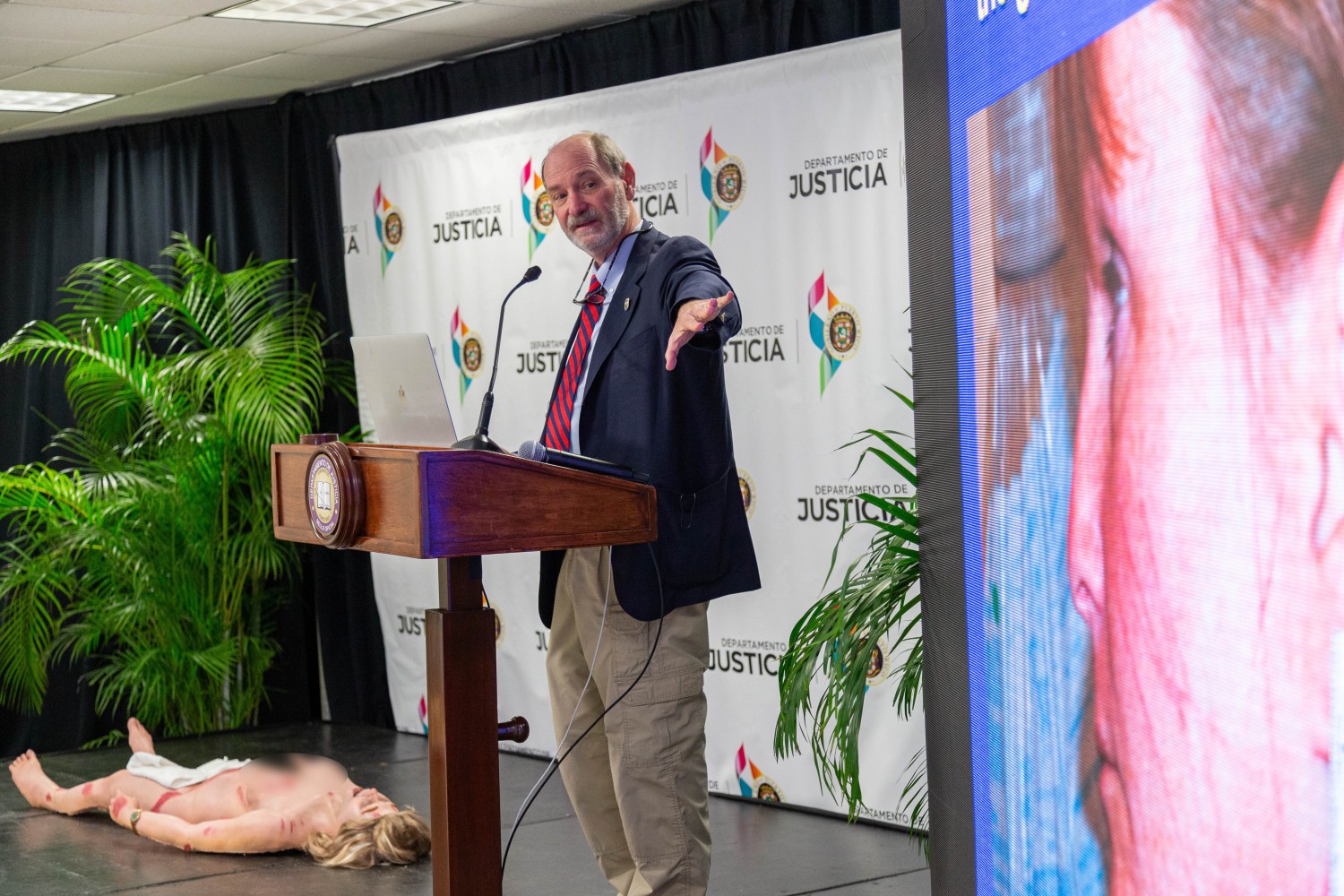 Para ello, contó con la participación del reconocido doctor William Smock, médico forense que se ha desempeñado como perito en casos criminales de gran notoriedad en Estados Unidos, aportando su experiencia para lograr convicciones. El Dr. Smock es director del Programa de Medicina Forense Clínica para el Departamento de la Policía Metropolitana de Louisville, Kentucky. Como parte de sus herramientas de capacitación, utilizó un maniquí anatómico con estructuras muy similares a los humanos, el cual fue creado para la investigación de casos reales.