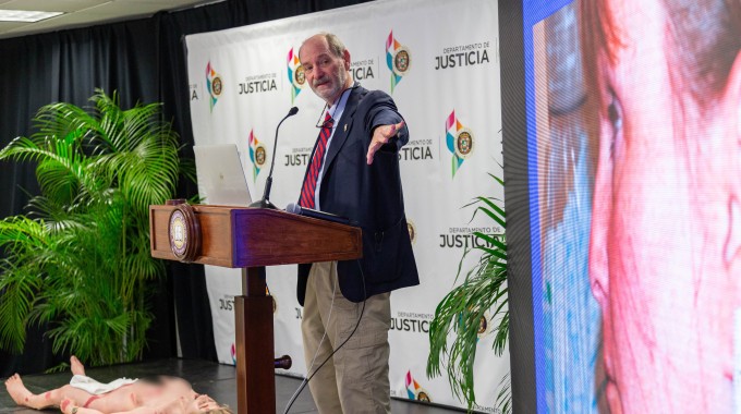 La fiscal Hernández Gutierrez destacó la experiencia del doctor Smock, recurso seleccionado para ofrecer el adiestramiento. “Cabe destacar, que mediante el testimonio del doctor Smock el Ministerio Público logró esclarecer el caso de Robert Feldman, demostrando que la esposa del acusado fue estrangulada y descartando la versión del cónyuge, quien alegó que la víctima falleció por el uso inadecuado de medicamentos controlados. La intervención del Dr. Smock permitió que en tres horas un jurado encontrara culpable a Feldman por asesinato en primer grado. Los patólogos de la ciudad de Denver no pudieron determinar la causa de muerte”, resaltó.